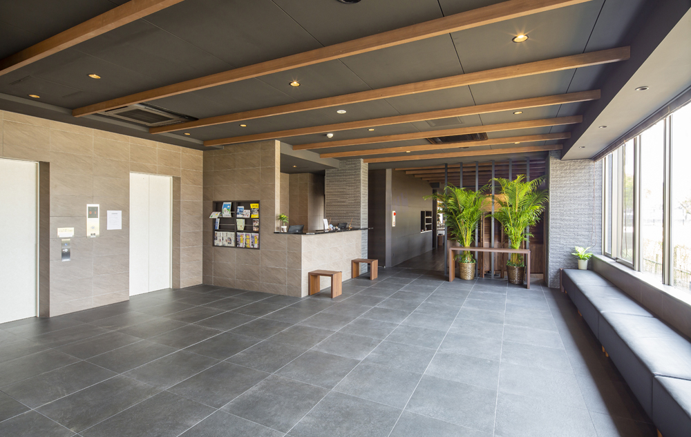 チェックインを済ませたご滞在中のお客様は、正面入口のキーを回して解除できます。
